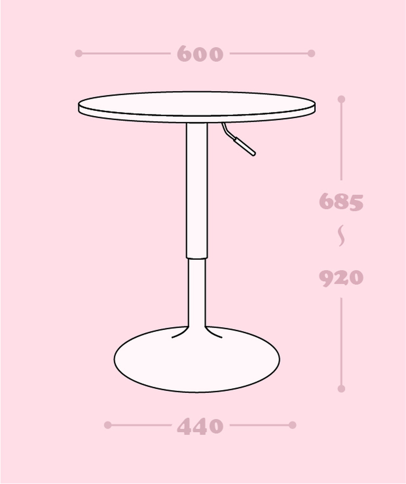 カフェテーブル昇降式 60 BK